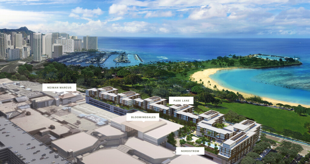 高層階のタワーが立ち並ぶホノルルの不動産シーンにおいて、圧倒的な存在感を放つ低層階の「パークレーン・アラモアナ」。