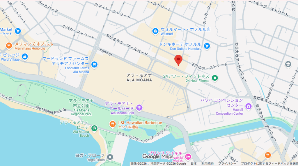 | 所在地 | 【HONOLULU・KAPIOLANI】1538 Kapiolani Boulevard Honolulu ,Hawaii 96814 |
