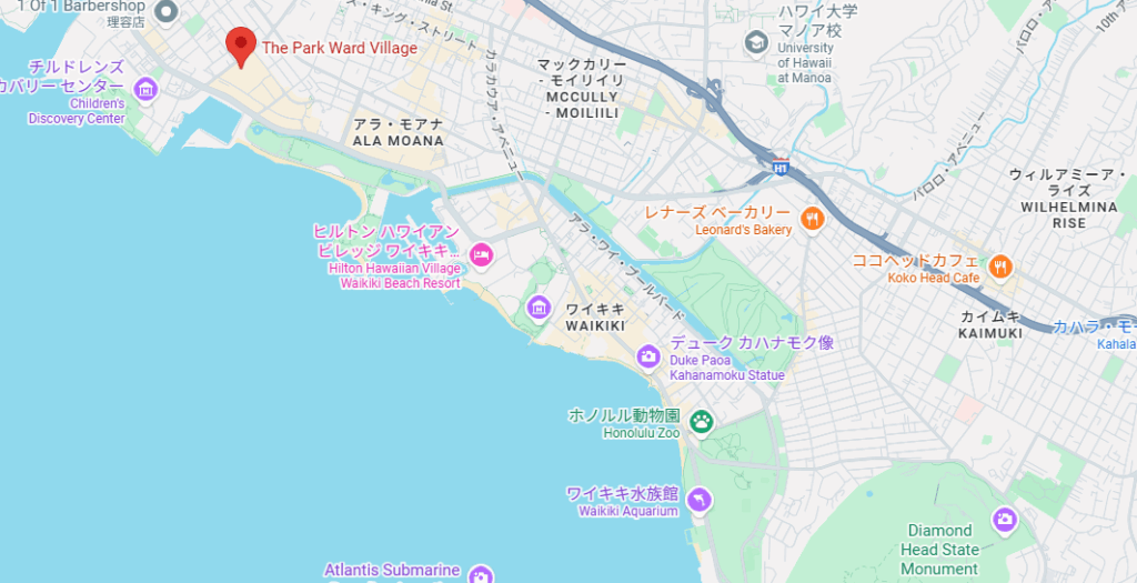 | 所在地 | 【HONOLULU・WARD VILLAGE】333 Ward Ave, Honolulu, HI 96814 USA |
