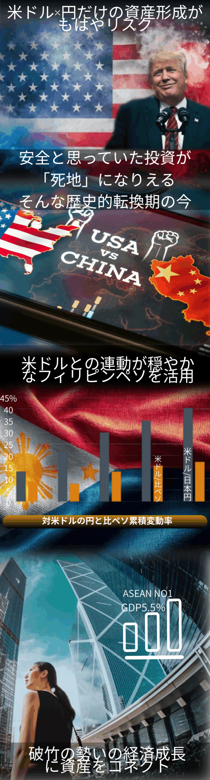 | フィリピン内の資産防衛 =リスクヘッジ | グローバル分散の効率化 | |